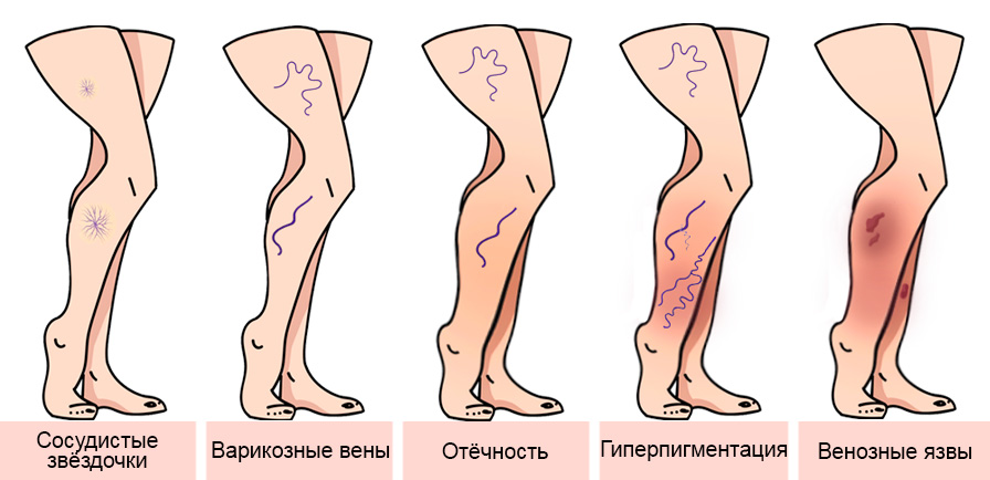 - Стадии развития: Выделяют несколько стадий от начальных проявлений (тяжесть и отечность) до осложнений (тромбоз, язвы).
